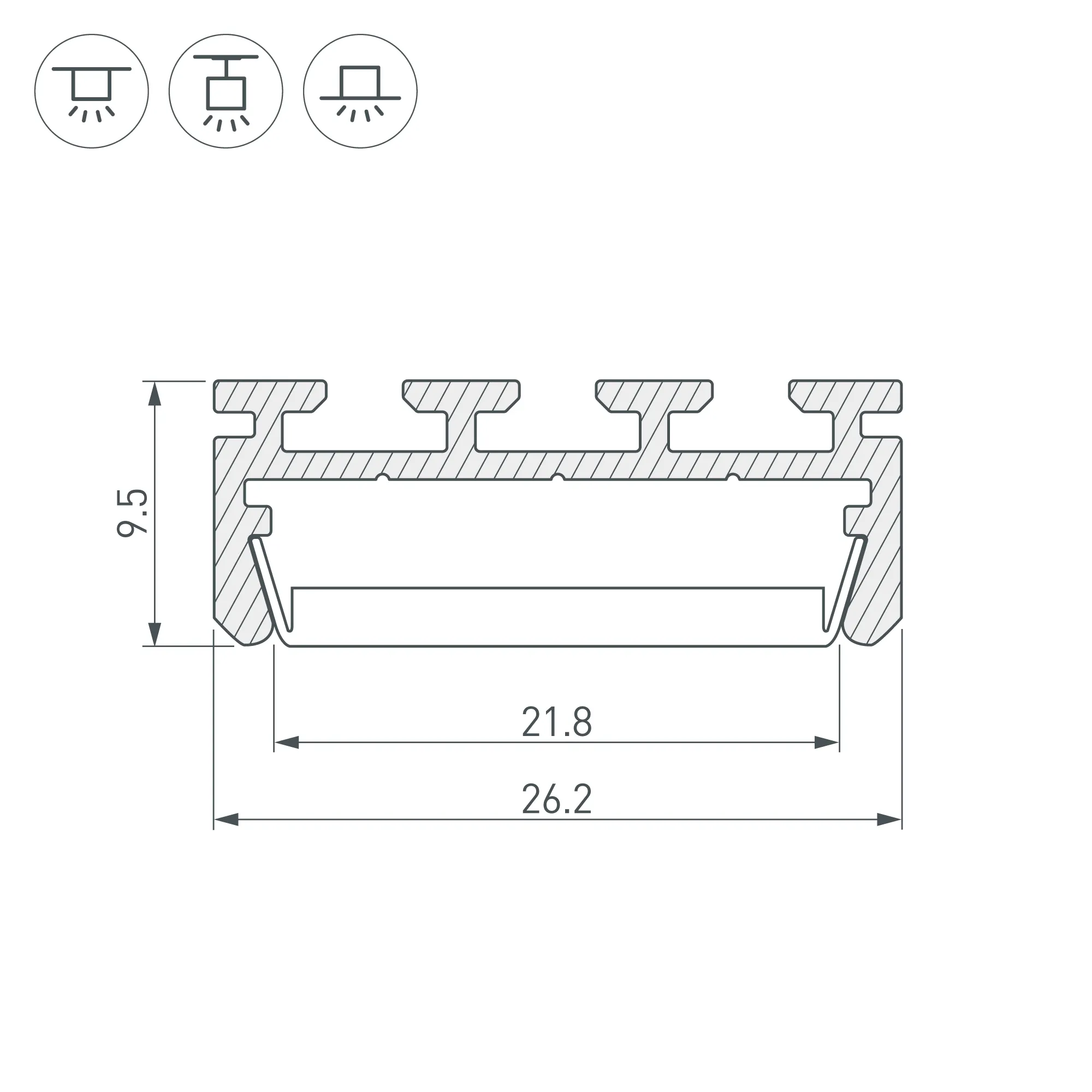 Алюминиевый анодированный профиль для светодиодных лент и линеек. Габаритные размеры (L×W×H): 2000x26,2x9,5 мм. Ширина площадки для ленты 22 мм. Экраны, заглушки и другие аксессуары приобретаются отдельно. При использовании с объемными экранами G-K, G-L необходимы дополняющие заглушки. Цена за 1 метр.