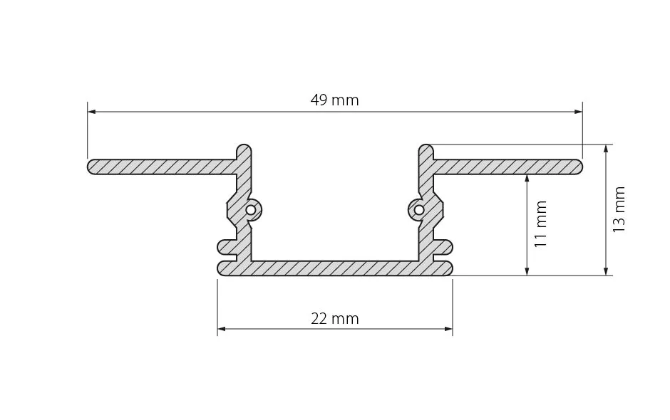 Алюминиевый профиль-держатель для профиля PDS-S. Встраивается в гипсокартон любой толщины, фланцы под штукатурку. Поставляется со вставкой из пены и 2х силиконовым фикс.шнуром. Размеры: высота 13мм, ширина с фланцем 49мм, основание (паз для установки) 22мм. Длина 2000мм. Цена за 1м.