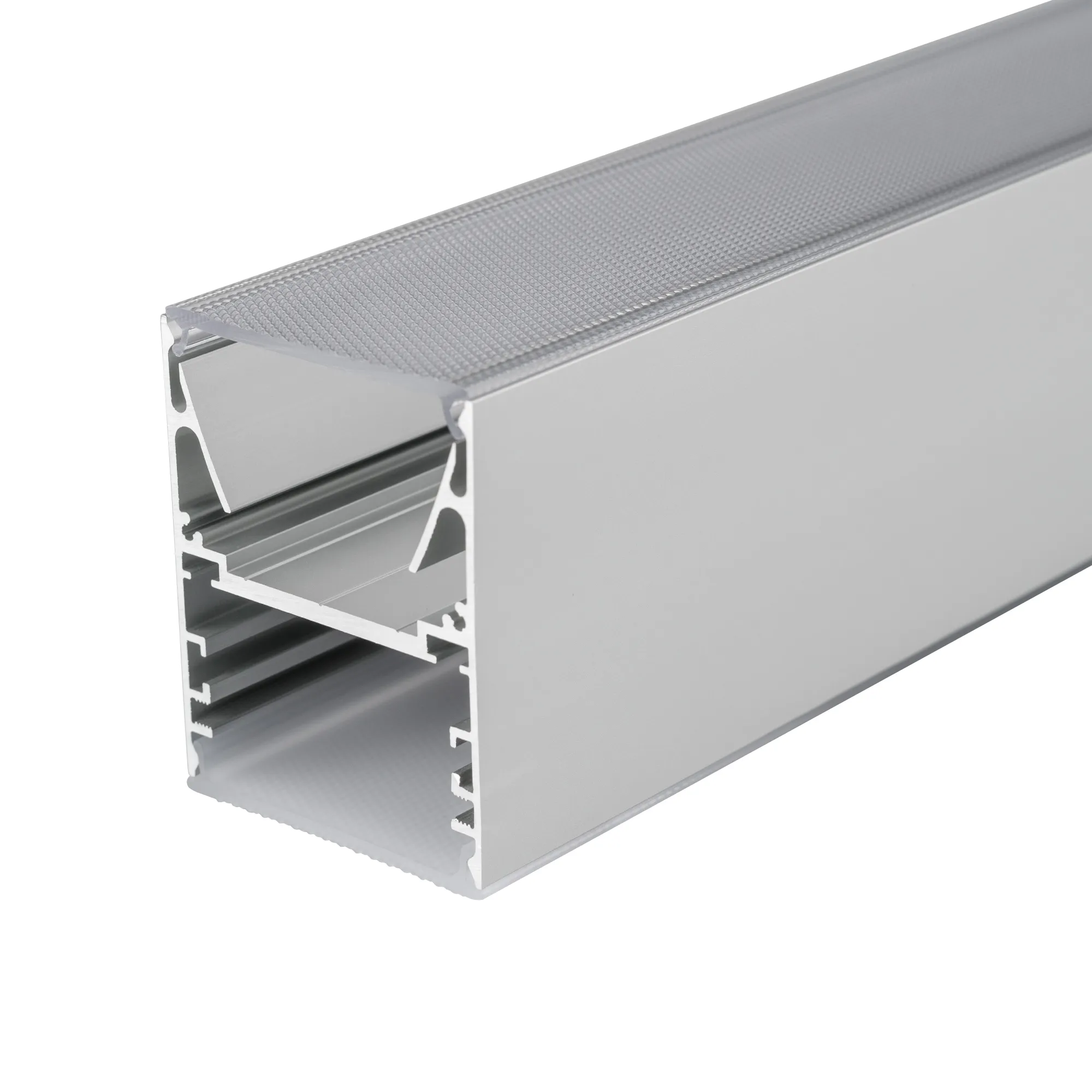 Профиль для подвесного монтажа с отсеком для блока питания. Поставляется в комплекте с 2-мя экранами - матовым и прозрачным призматическим.