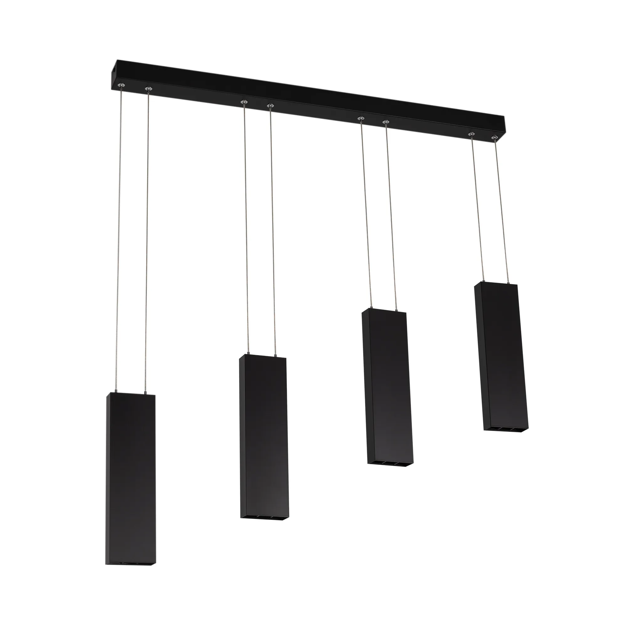 Подвесной светильник 4х6Вт, черный корпус, материал алюминий. Цвет ТЕПЛЫЙ БЕЛЫЙ 3000K, св.поток 2100лм, CRI(Ra)>80, угол 34°. Размер 835x50x1200мм. Питание AC220-240, драйвер в комплекте (30-42V, 600mA), 24Вт. Гарантия 3 года.