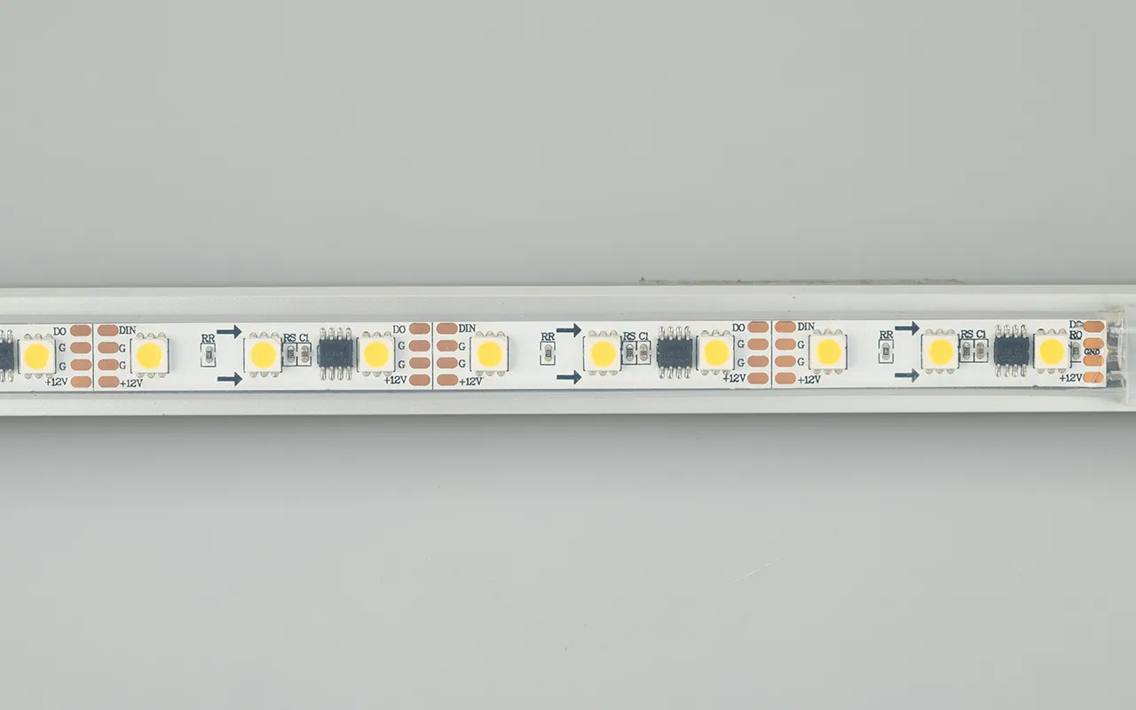 Гибкая герметичная БЕЛАЯ лента Бегущие огни в силиконовой трубке (IP66), со СКОТЧЕМ 3M на обратной стороне, с драйвером 1804, встроенный в ленту контроллер с циклическим автозапуском 17 программ (Auto mode) и подкл-ем внеш. контроллера. Длина 5м, 300шт LED White 5060, 20 pixel/m (1 pixel = 3 LED). Питание 12V, ном. мощн. 10 Вт/м (динамич. режим), макс. мощн-ть 13,2 Вт/м (статический белый цвет). Ширина 12 мм. Герметичные КРУГЛЫЕ коннекторы.
