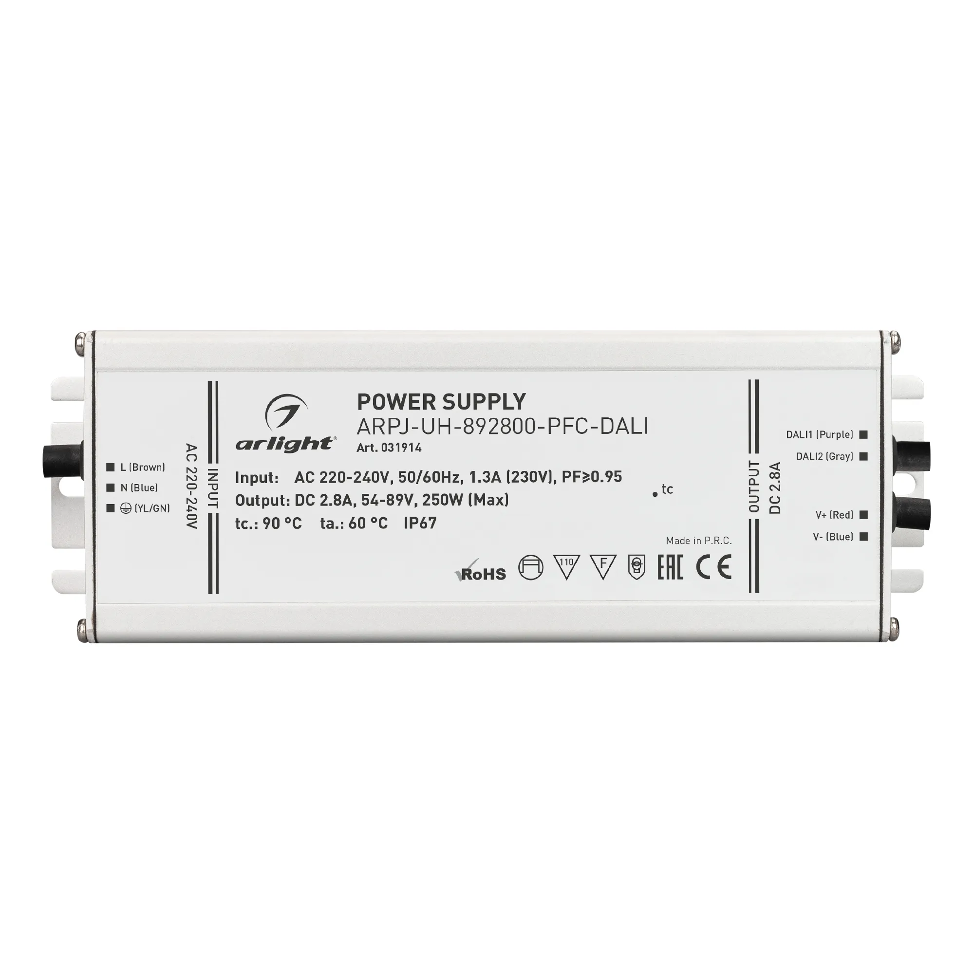 Блок питания ARPJ-UH-892800-PFC-DALI (250W, 2.8A) (Arlight, IP67 Металл, 7 лет)