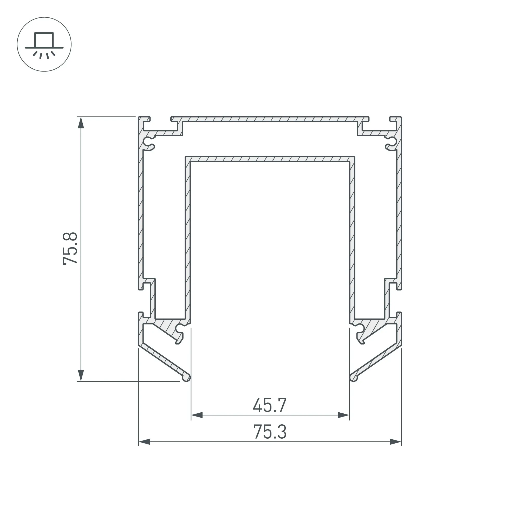 Профиль-держатель для установки магнитного трека MAG-TRACK-4563 в натяжной потолок. Размер: длина 2000 мм, ширина 75.3 мм, высота 75.8 мм. Материал алюминий, цвет серебристый.