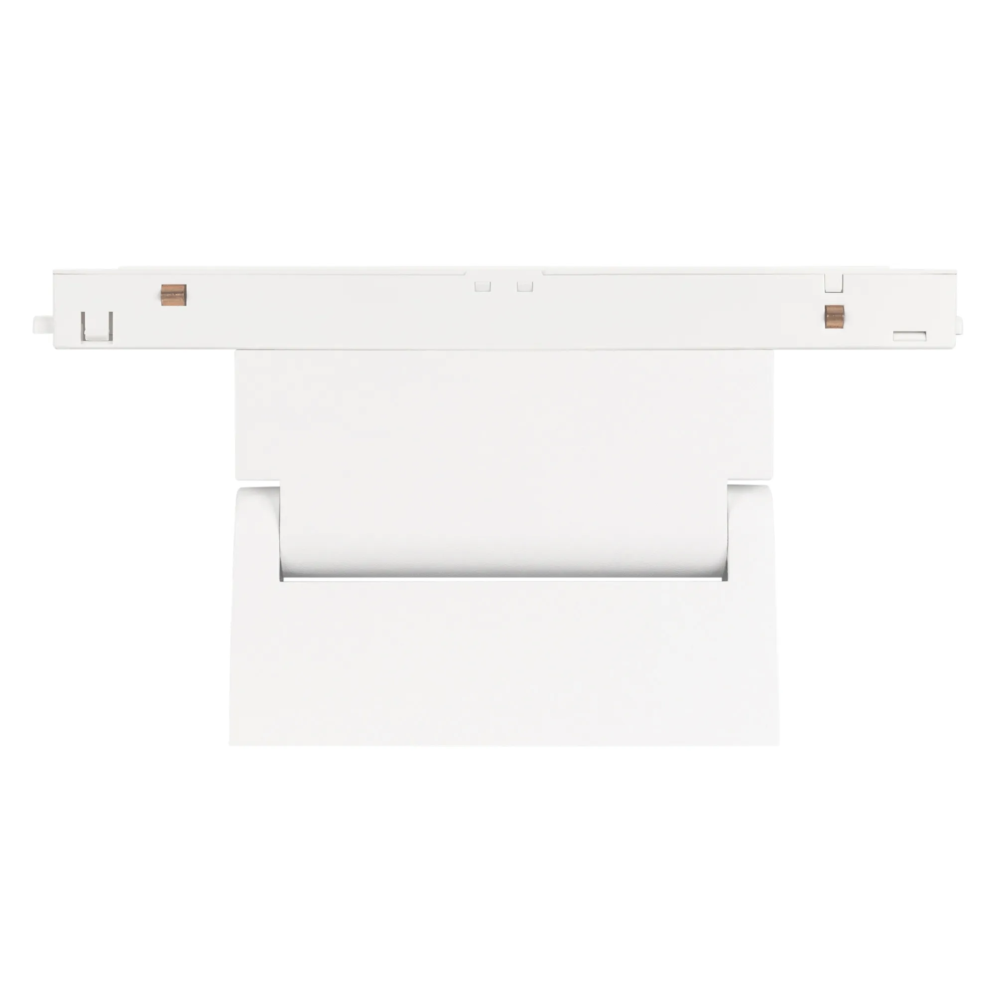 Светильник для магнитных треков MAG-ORIENT шириной 26 мм с управлением DALI. Мощность 6 Вт, св. поток 370 лм, 60 лм/Вт, теплый 3000 K, CRI>90, угол 80°, напряжение питания 48 В. Белый прямоугольный корпус из металл, экран поликарбонат, степень защиты IP20. Размер: длина 204 мм, ширина 23 мм, высота 99 мм. Монтаж на трек MAG-ORIENT, пульсация <1%.