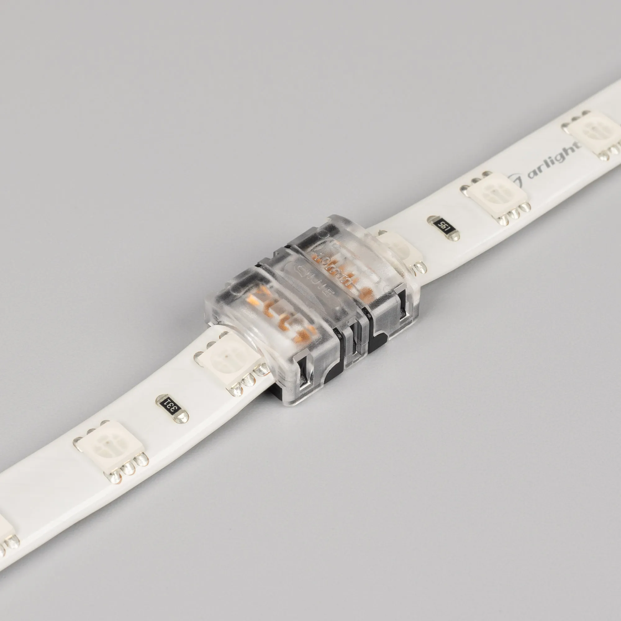 Одиночный коннектор для соединения 2-х отрезков герметичных (IP54/IP65) RGB лент SE (заливка силиконом сверху) шириной 10 мм. Материал - прозрачный пластик. Обеспечивает соединение без видимых разрывов. Максимальный допустимый ток 3 А, напряжение 3-24 В, степень защиты IP55. Цена за 1 шт.