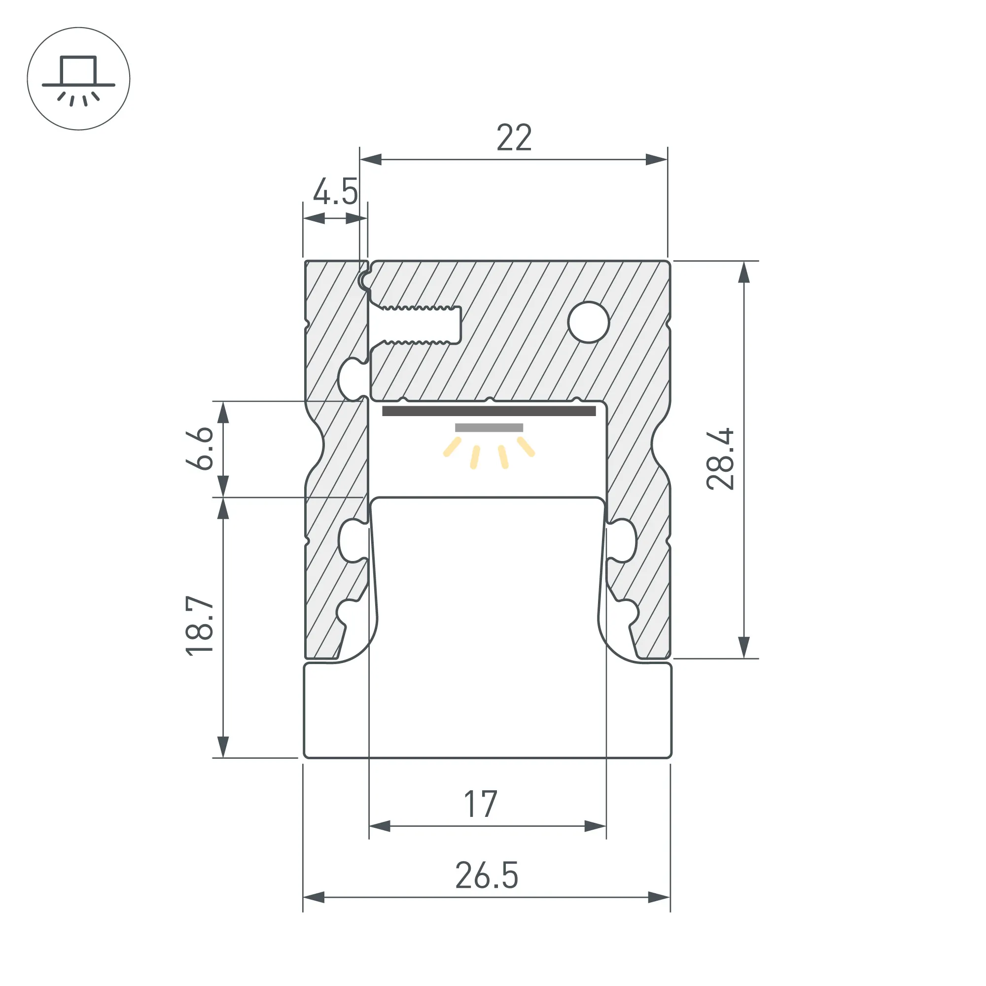 Алюминиевый анодированный двухкомпонентный профиль. Высокопрочный алюминий. Герметизация до IP67 (при соблюдении технологии герметизации). Габаритные размеры (L×W×H): 2000x26,5x28,4 мм. Ширина площадки для ленты 17мм. В комплекте силиконовая уплотнительная резинка - 7м и шурупы. Заглушки и другие аксессуары приобретаются отдельно. Цена за 1 метр.