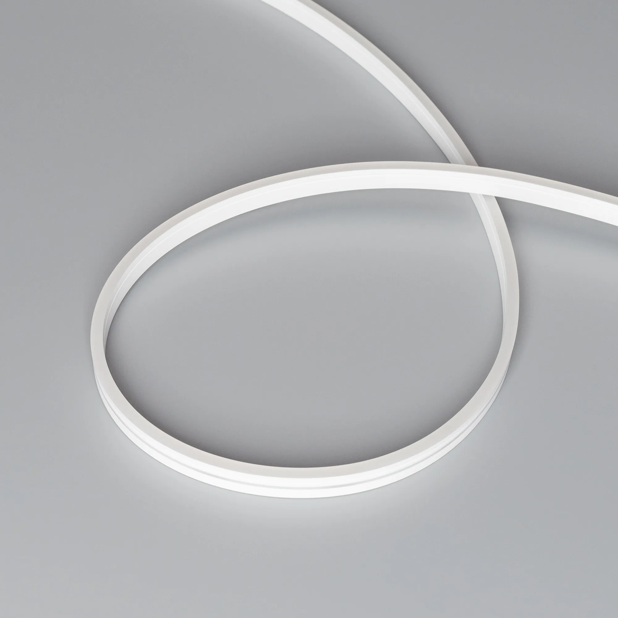 Гибкая герметичная лента (неон серии MOONLIGHT), сечение 4×10 мм. Светодиоды SMD 2835 168 шт/м. Цвет свечения ТЁПЛЫЙ БЕЛЫЙ (3000 К), индекс цветопередачи CRI>90, световой поток 240 лм/м, угол излучения 110°. Мощность 7.2 Вт/м, питание 24 В. Класс пылевлагозащиты IP65. Размеры 5000×10×4 мм. Мин. отрезок 41.66 мм. Горизонтальный изгиб SIDE, минимальный радиус изгиба 30 мм. Вывод кабеля с двух сторон. Катушка 5 м. Цена за 1 м. Гарантия 3 года.