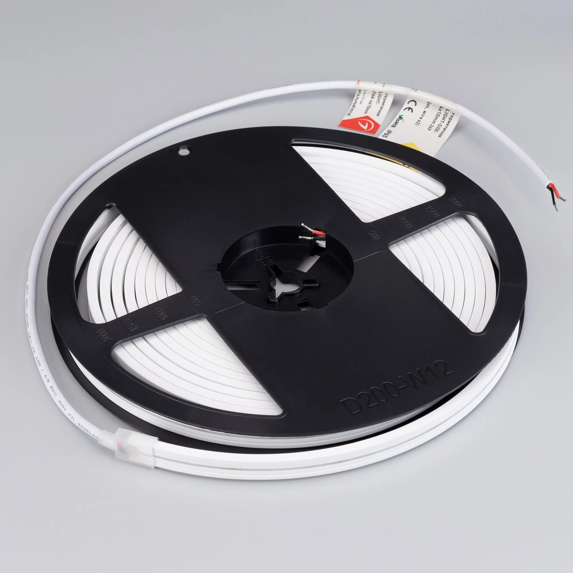 Гибкая герметичная лента (неон серии MOONLIGHT), сечение 4×10 мм. Светодиоды SMD 2835 168 шт/м. Цвет свечения ТЁПЛЫЙ БЕЛЫЙ (2700 К), индекс цветопередачи CRI>90, световой поток 240 лм/м, угол излучения 110°. Мощность 7.2 Вт/м, питание 24 В. Класс пылевлагозащиты IP65. Размеры 5000×10×4 мм. Мин. отрезок 41.66 мм. Горизонтальный изгиб SIDE, минимальный радиус изгиба 30 мм. Вывод кабеля с двух сторон. Катушка 5 м. Цена за 1 м. Гарантия 3 года.