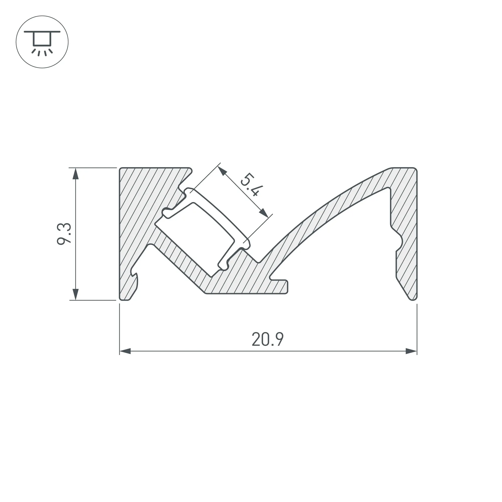 Алюминиевый анодированный накладной профиль для светодиодных лент и линеек с боковым свечением. Цвет - черный. Габаритные размеры (L×W×H): 2000x20,9x9,3 мм. Ширина площадки для ленты 5,4 мм. Экраны, заглушки и другие аксессуары приобретаются отдельно. Цена за 1 метр.