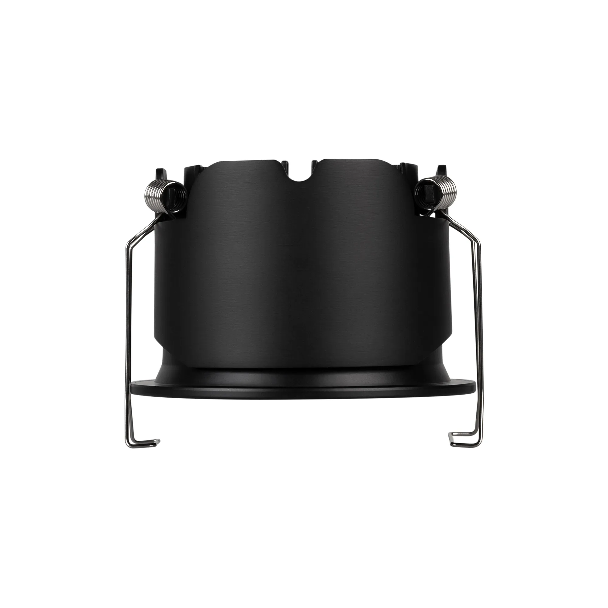 Встраиваемый светильник даунлайт. Мощность 10 Вт, св. поток 980 лм, 98 лм/Вт, тёплый 2700 K, CRI>90, угол 36°, напряжение питания 230 В. Чёрный круглый корпус из алюминия, степень защиты IP20. Размер: диаметр 82 мм, высота 53 мм. Монтаж встраиваемый, установочное отверстие: диаметр 75 мм. UGR<14. Драйвер 30-42 В, 250 мА, пульсация <2%.