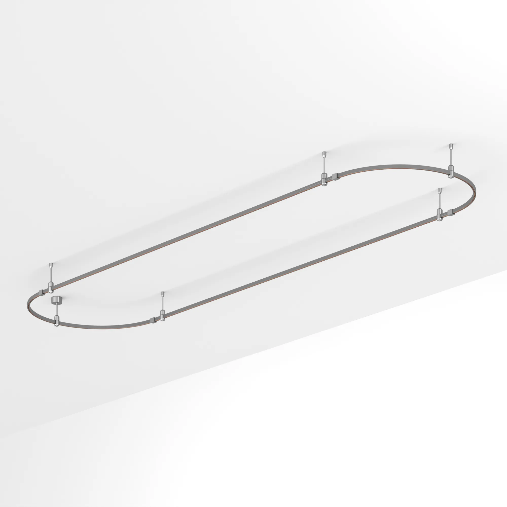Подвесная конструкция APRIORI, форма овал. В комплекте треки с аксессуарами и жесткими подвесами длиной 200мм. DC48V. Материал алюминий, цвет титан. Размер ДxШxВ: 4000x1000x22мм. Светильники и источники питания приобретаются отдельно.